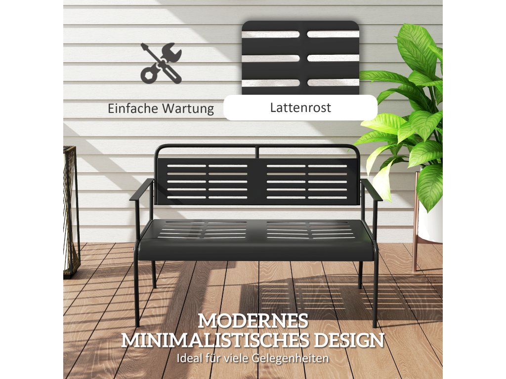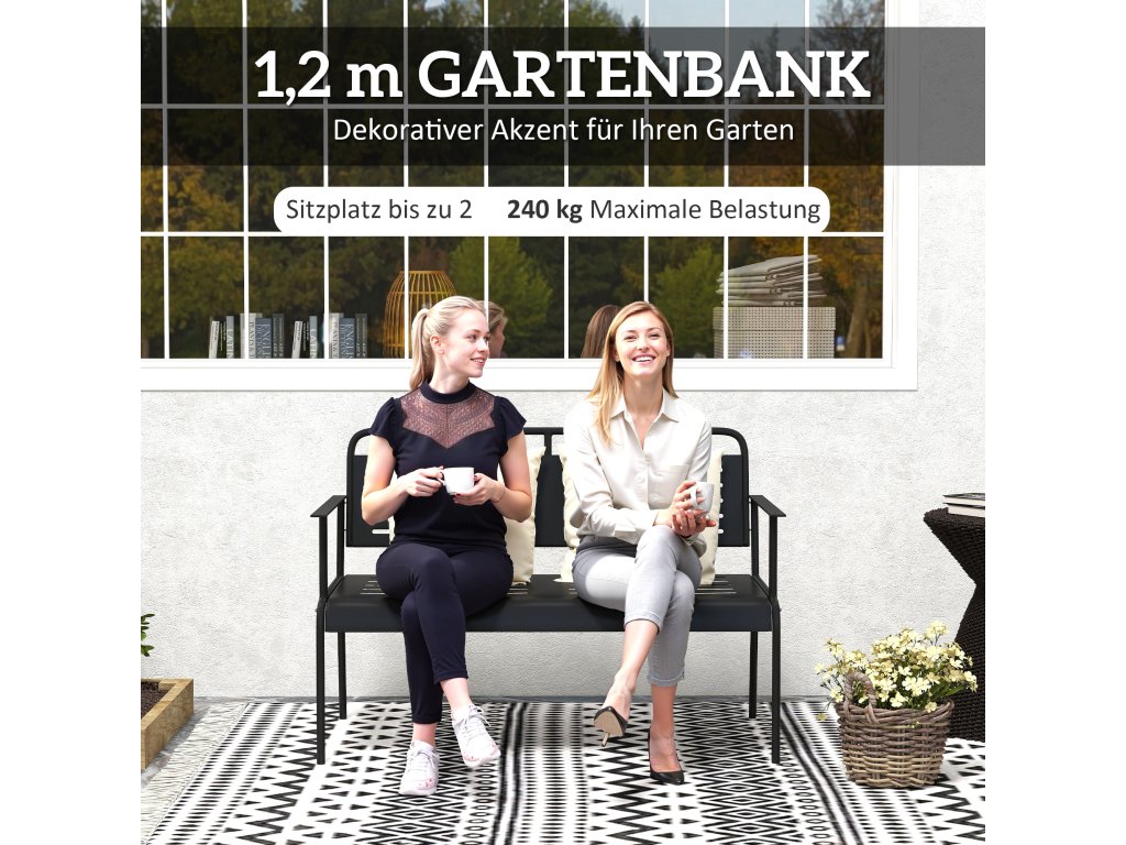 Užijte si odpočinkové hodiny na elegantní venkovní lavici. Robustní ocelový rám zahradní lavičky je odolný proti korozi a práškově lakovaný, nosnost 240 kg, černá.