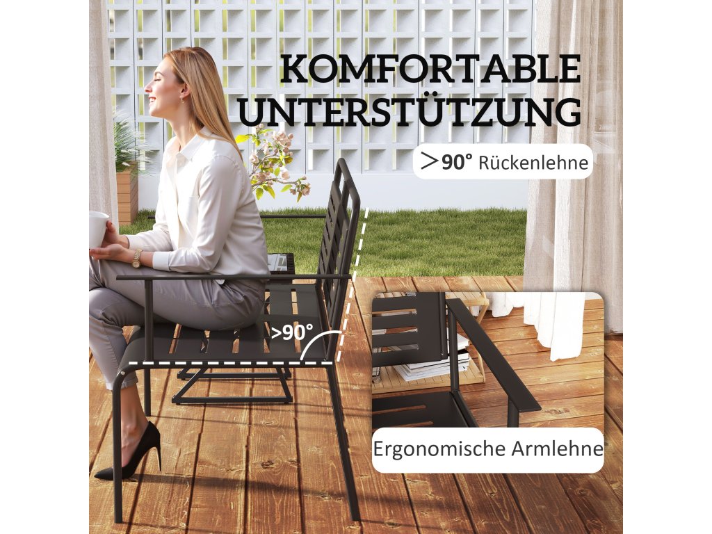 Robustní ocelová konstrukce: Vyrobeno z odolné, masivní oceli s práškovým nástřikem pro ochranu proti korozi; tato zahradní lavice unese až 240 kg – ideální pro pohodlný odpočinek dvou dospělých.