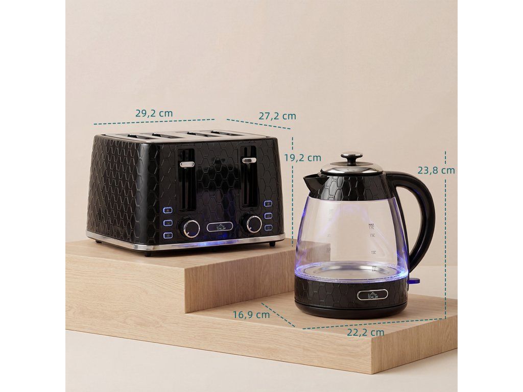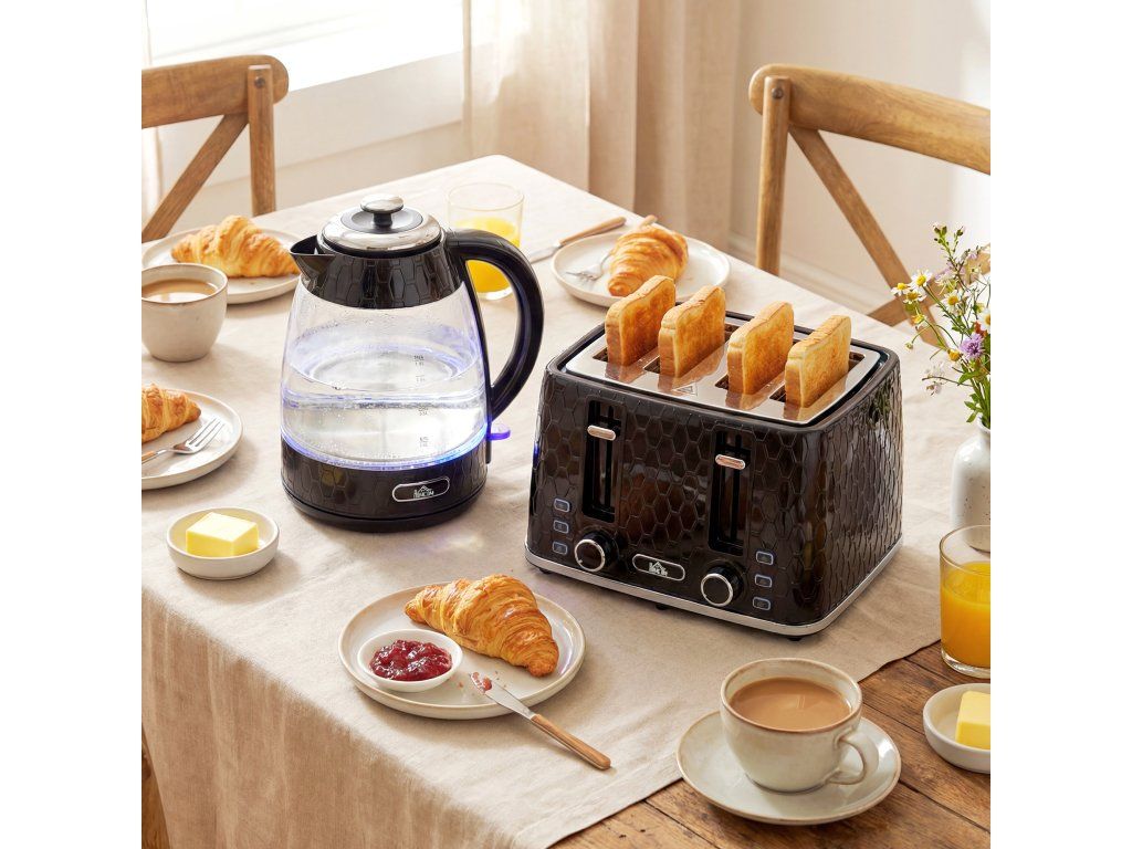 ✔ Topinkovač na čtyři plátky a konvice zajistí, že snídaně bude hotová najednou.