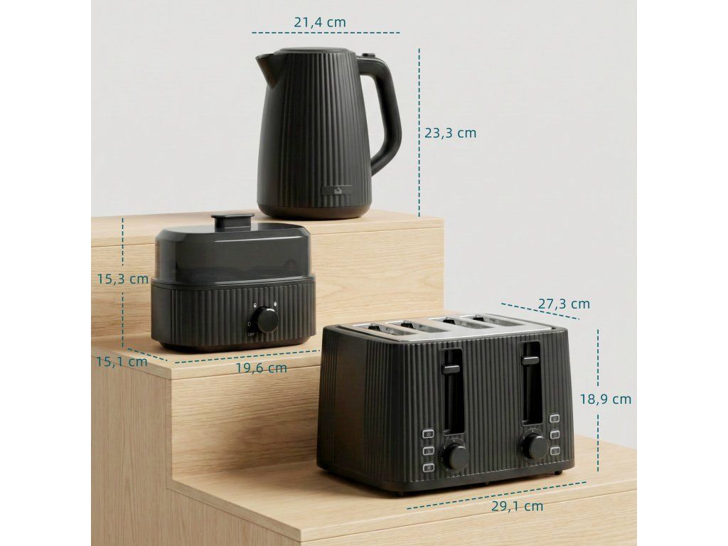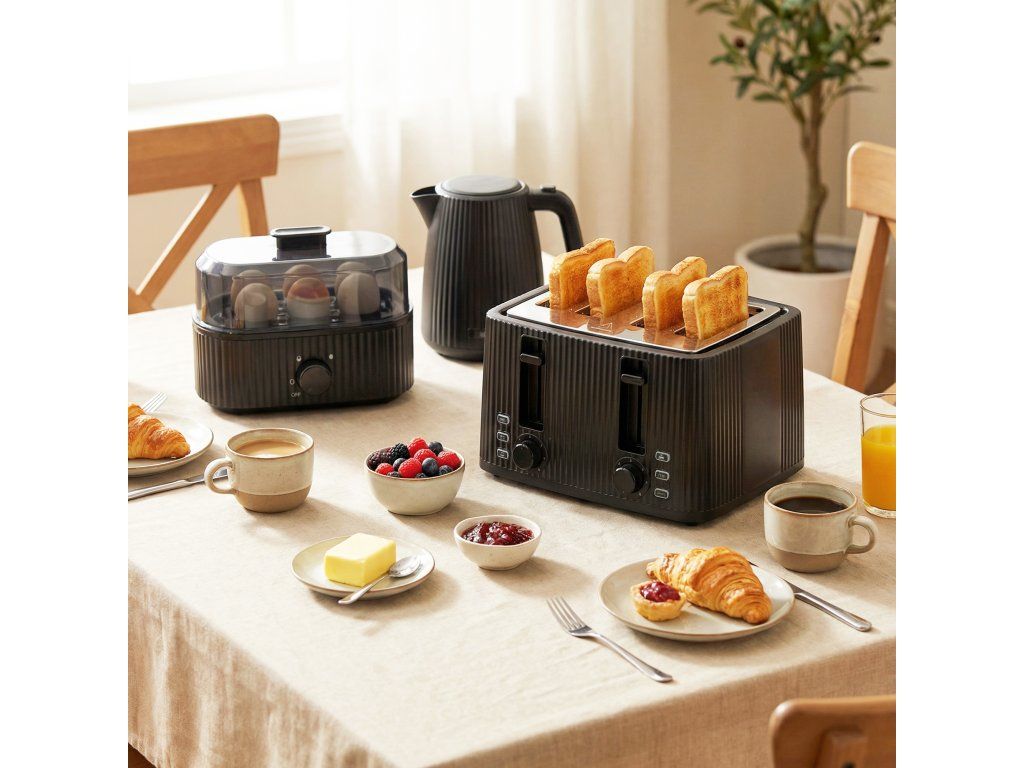 ✔ Kompletní snídaňová sada zjednodušuje rána s konvicí, toustovačem a vařičem vajec.
