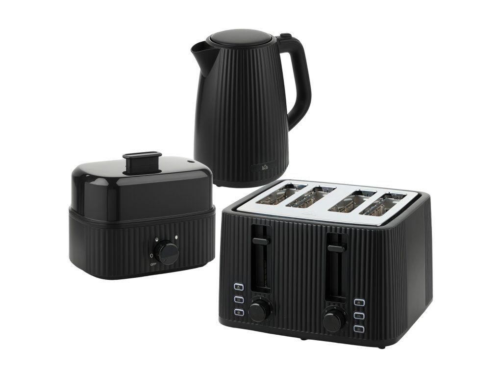 Začněte svůj den bez stresu se sadou kuchyňských spotřebičů Kettle. Souprava obsahuje rychlovarnou konvici o objemu 1,7 l, toustovač na 4 plátky ideální pro celou rodinu a vařič na 6 vajec – vše, co potřebujete pro perfektní snídani. Bezpečnostní prvky, jako je ochrana proti vyvaření naprázdno a automatické vypnutí, vám zajistí klid a pohodu, zatímco intuitivní ovládání toustovače a praktický časovač vařiče na vejce zrychlí a usnadní přípravu každého rána.