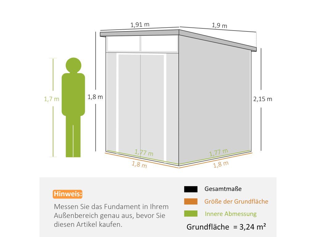 Velký interiér: Tento zahradní domek o rozměrech 190 x 191 x 215 cm nabízí prostorný interiér o rozměrech 177 x 177 cm, ideální pro uložení zahradního nářadí a vybavení.