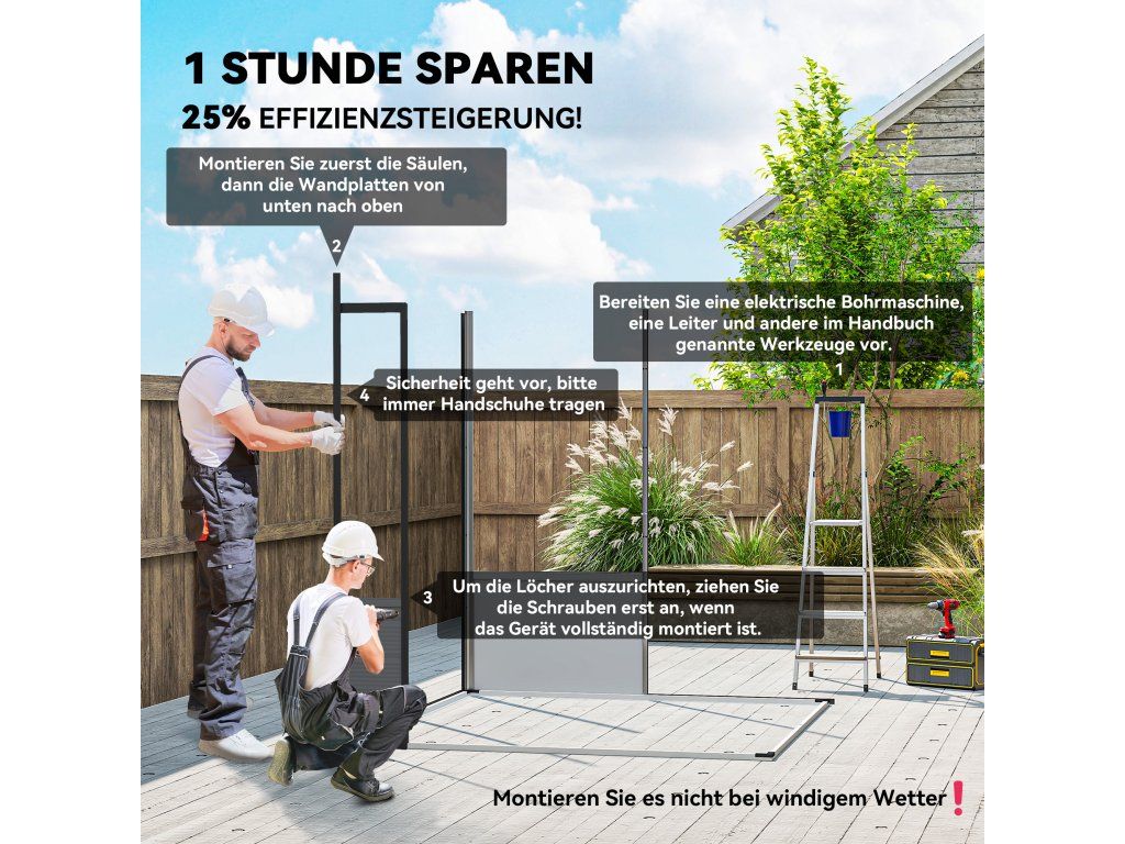 Bezbariérové dvojité dveře: Velkoryse dimenzované, dvoukřídlé dveře umožňují snadný přístup do zahradního domku a jsou zajištěny spolehlivou západkou (zámek není součástí dodávky), která chrání vaše cennosti.