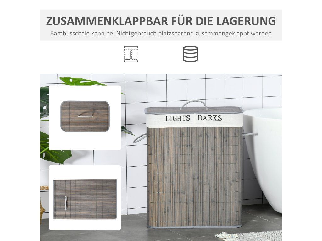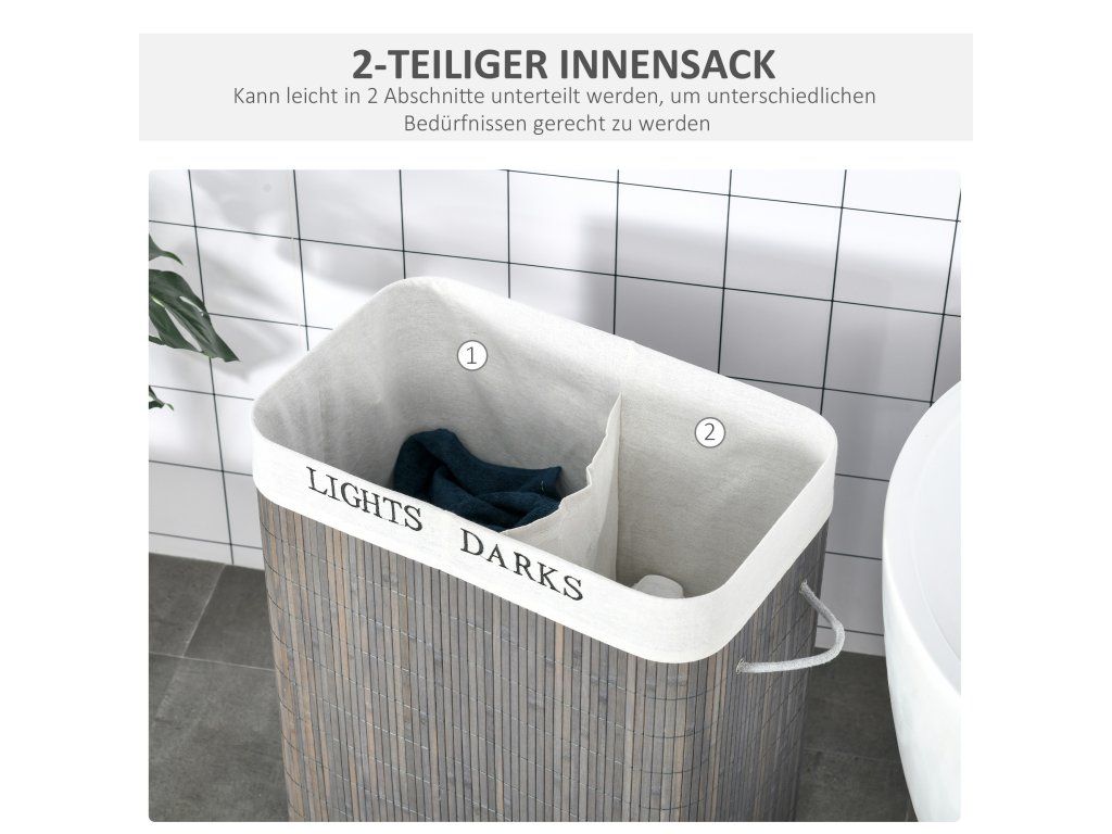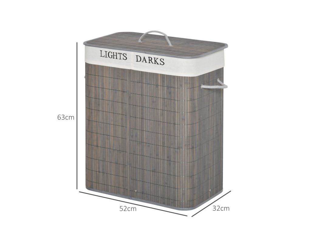 Tento bambusový koš na prádlo je ideálním řešením pro každou domácnost. Je vyroben z bambusu s odnímatelnou a pratelnou látkovou podšívkou pro snadnou organizaci, kovový rám poskytuje větší stabilitu pro každodenní použití a koš má dvě samostatné přihrádky pro úhlednou a praktickou organizaci prádla.