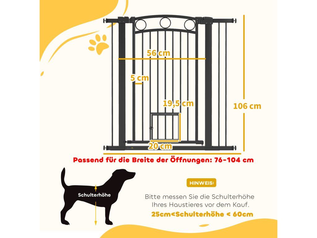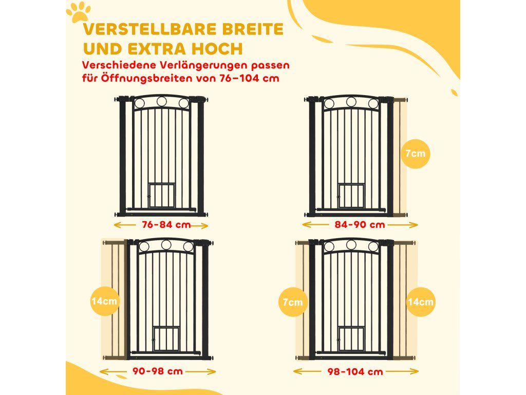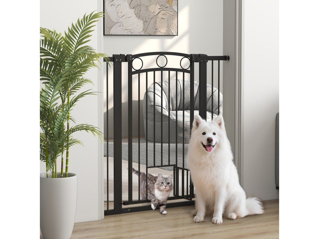 Snadno nastavitelná: Tato vysoká branka pro domácí mazlíčky nabízí nastavitelnou šířku 76–104 cm a výšku 106 cm, ideální pro většinu schodišť a dveří, aby byli domácí mazlíčci v bezpečí.