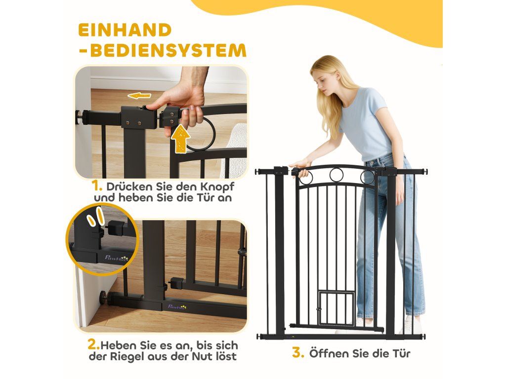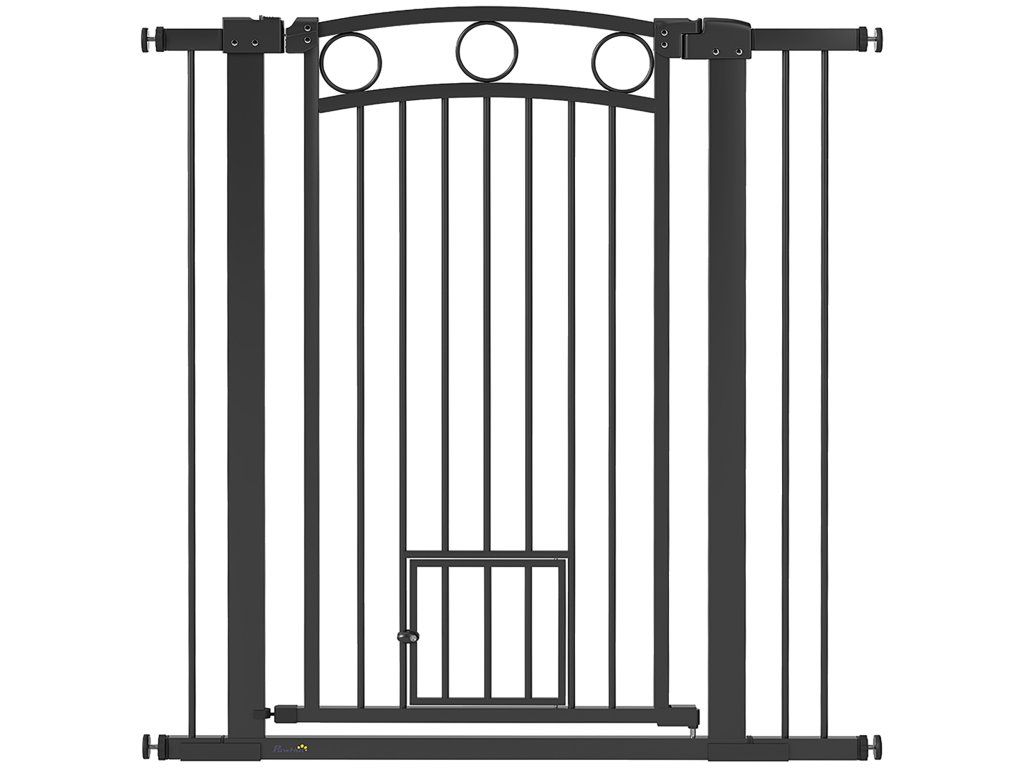 Vhodné pro domácí mazlíčky: Díky integrovaným dvířkám pro kočky je ideální pro domácnosti s kočkami a psy. Elegantní design branky se bez problémů začlení do jakéhokoli schodiště, chodby nebo dveří.