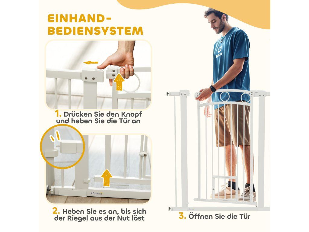 Vhodné pro domácí mazlíčky: Díky integrovaným dvířkám pro kočky je ideální pro domácnosti s kočkami a psy. Elegantní design branky se bez problémů začlení do jakéhokoli schodiště, chodby nebo dveří.