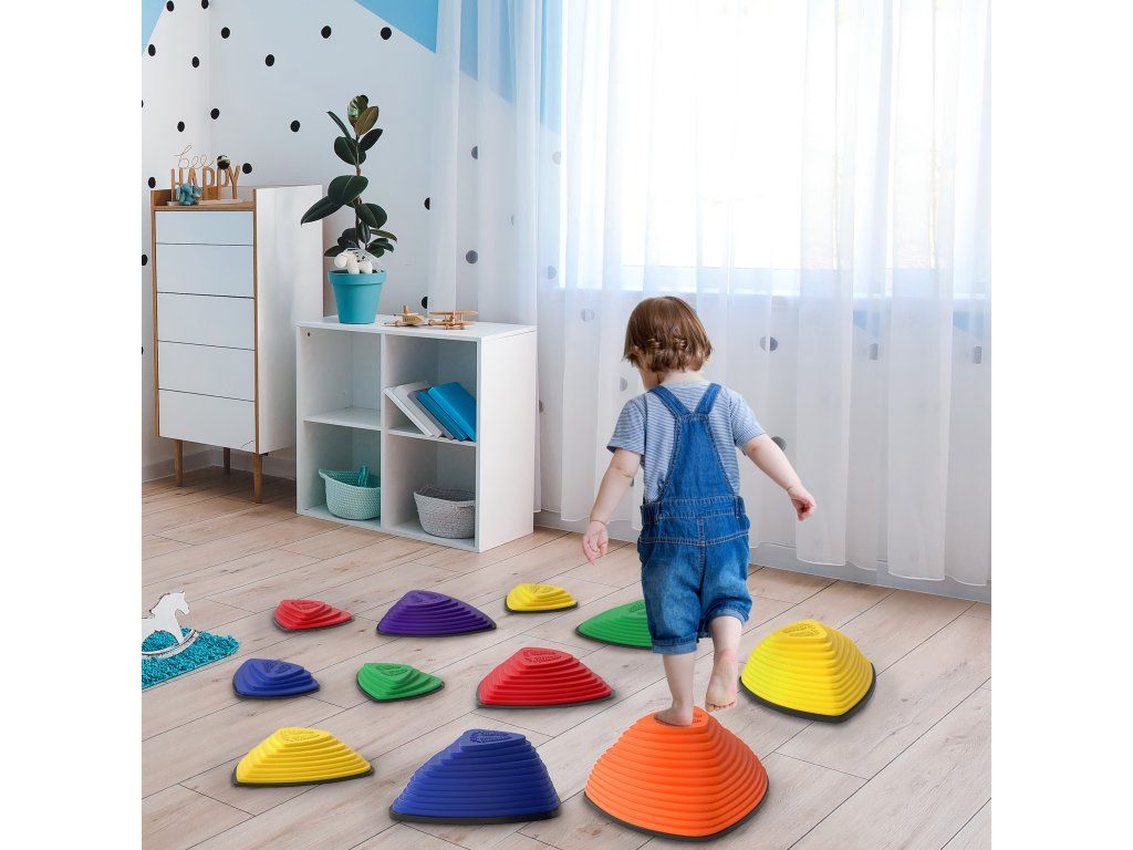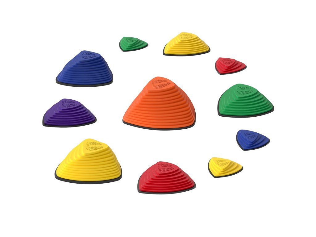 Balanční kameny jsou ideální pro rostoucí děti. Tato sada 11 kusů podporuje rovnováhu a koordinaci. Jejich trojúhelníkový tvar a zářivé barvy povzbuzují ke hře. Díky protiskluzovým potahům a texturovaným povrchům nabízejí bezpečnost. Jsou lehké, stohovatelné a vhodné pro použití v interiéru i exteriéru. S těmito senzorickými balančními kameny si hraní udělejte bezpečnou a zábavnou.