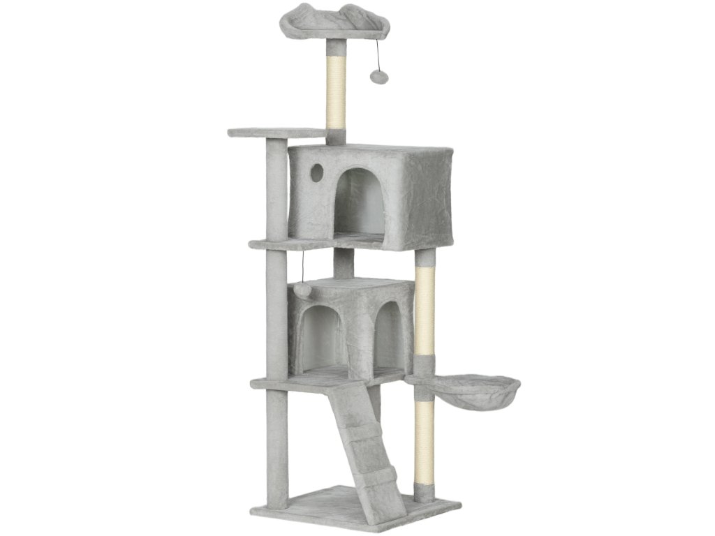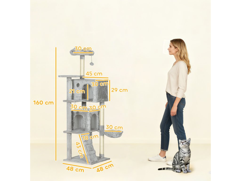 Kočičí ráj: Tento vícevrstvý škrabadlo pro kočky nabízí útulná místa na odpočinek, prostornou jeskyni, šplhací žebřík, měkkou houpací síť a pevné sisalové sloupky – ideální pro škrábání, lezení a relaxaci v atraktivním designu.