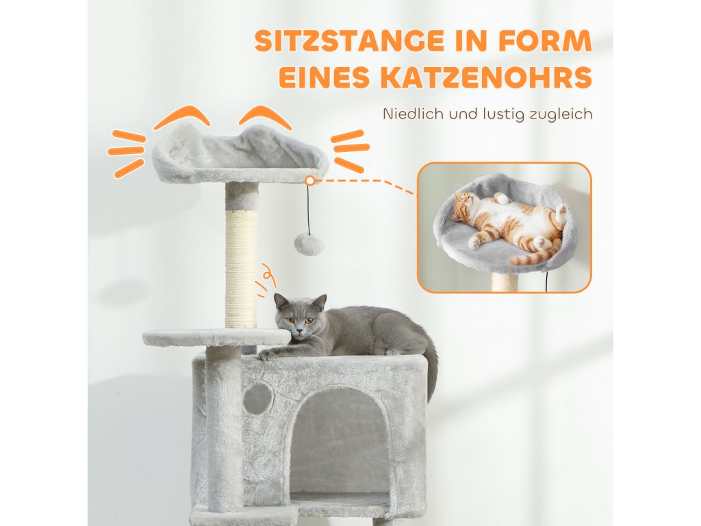 ✔ Horní plošina s kočičími ušima a závěsným míčkem nabízí okouzlující výhled.