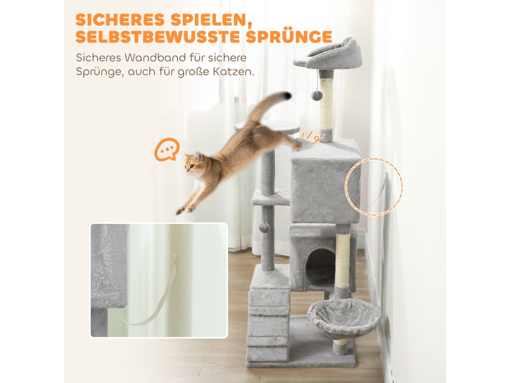 Sloupky připravené ke škrábání: Sloupky škrabacího stromu pro kočky, kompletně potažené sisalem, podporují přirozený instinkt škrábání, chrání váš nábytek před poškozením drápy a díky svému decentnímu zbarvení dokonale zapadají do jakéhokoli obytného prostoru.