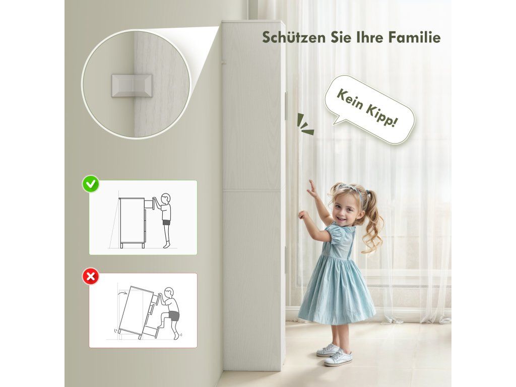 ✔ Protipřevrhovací sady na vysoké skříňce poskytují větší bezpečnost a stabilitu.
