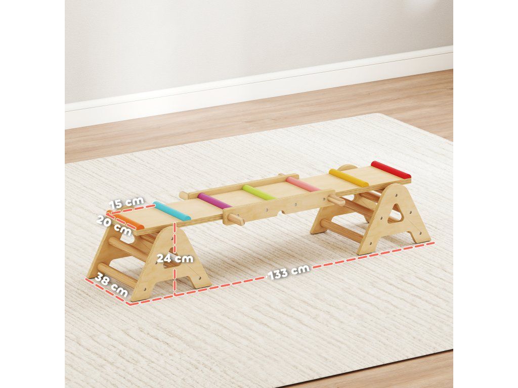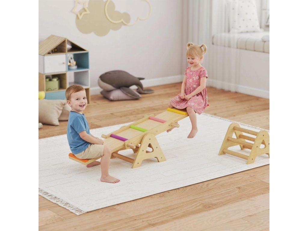 Máte potíže s udržením aktivit vašich dětí doma? Dětské houpací lehátko promění každou místnost v zábavné hřiště. Díky robustnímu designu ve tvaru písmene A slouží jako bezpečné houpací lehátko a kladina inspirovaná metodou Montessori, ideální pro hravé zlepšení rovnováhy a koordinace.