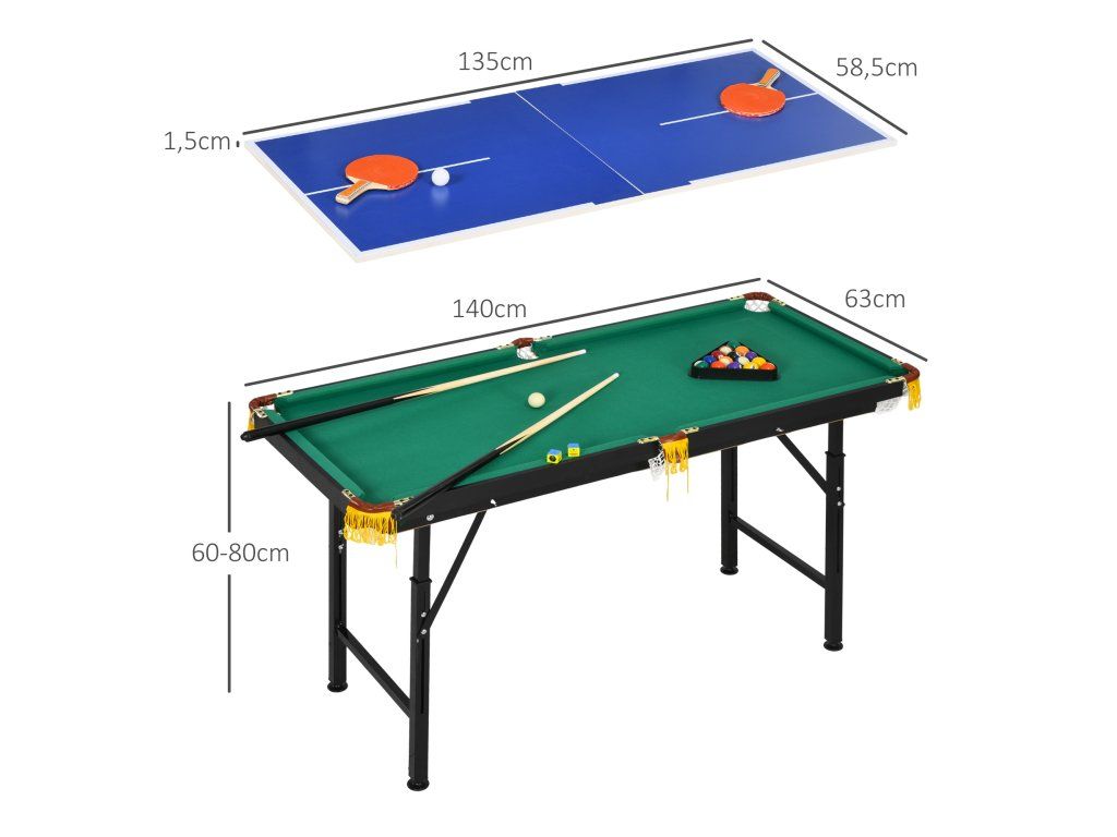 Kulečníkový stůl 2 v 1 – kulečník, stolní tenis 140 × 63 × 80 cm | modrozelený