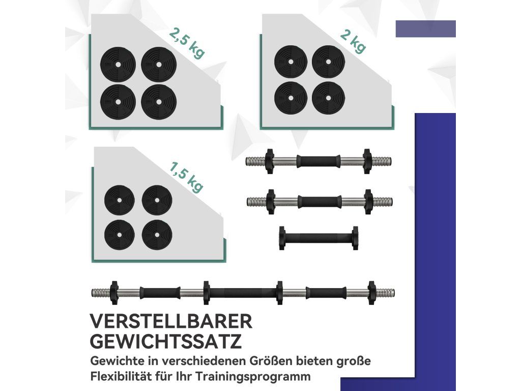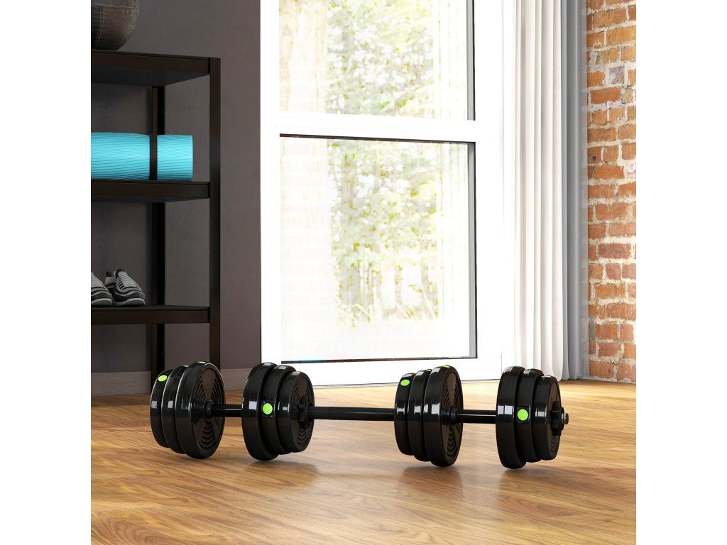 Změňte svůj domácí trénink s naší sadou činek. Přepínejte mezi činkami a činkou, abyste změnili svůj tréninkový program a upravte váhu tak, aby odpovídala vaší úrovni síly. Díky protiskluzovým rukojetím a bezpečným uzávěrům získáte bezpečný tréninkový zážitek. Plastový povrch zajišťuje pevné uchopení a chrání vaši podlahu. Ať už jde o kardio nebo budování svalů – nyní je čas na plný výkon!