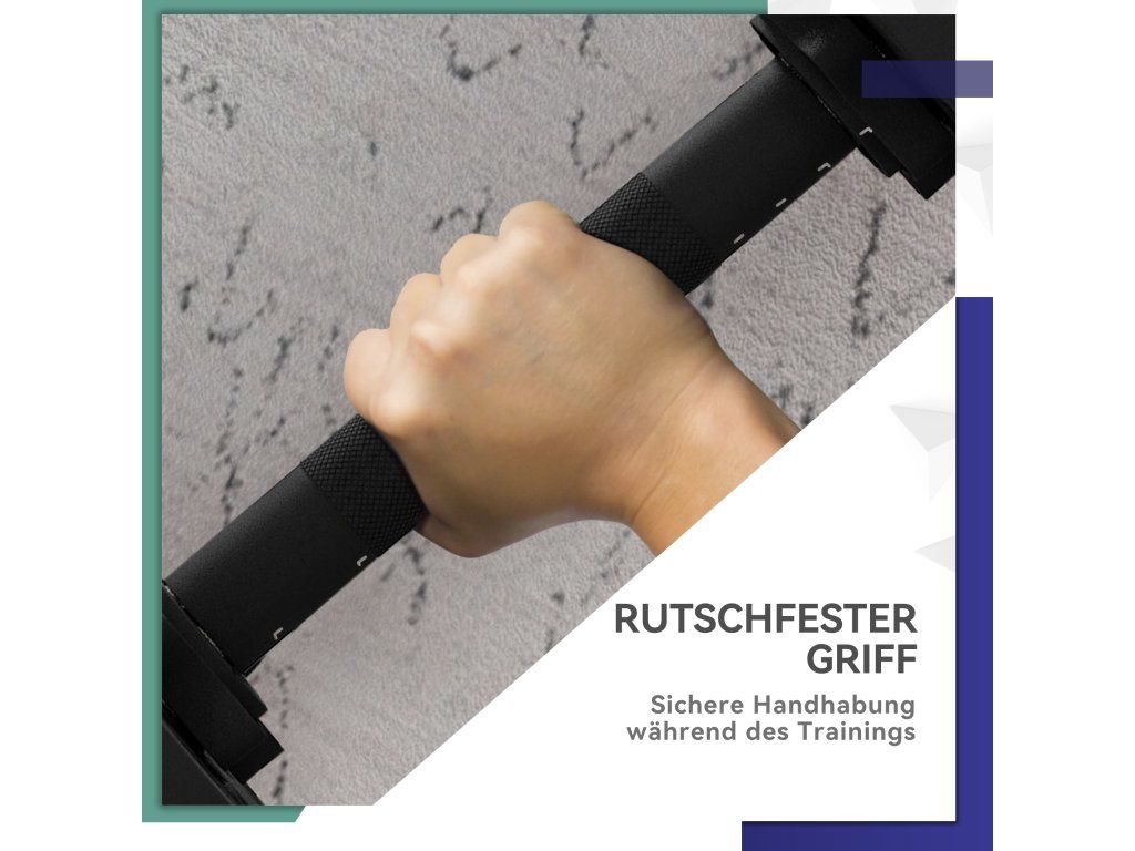 ✔ Protiskluzové rukojeti sady činek zaručují bezpečnou manipulaci při tréninku.
