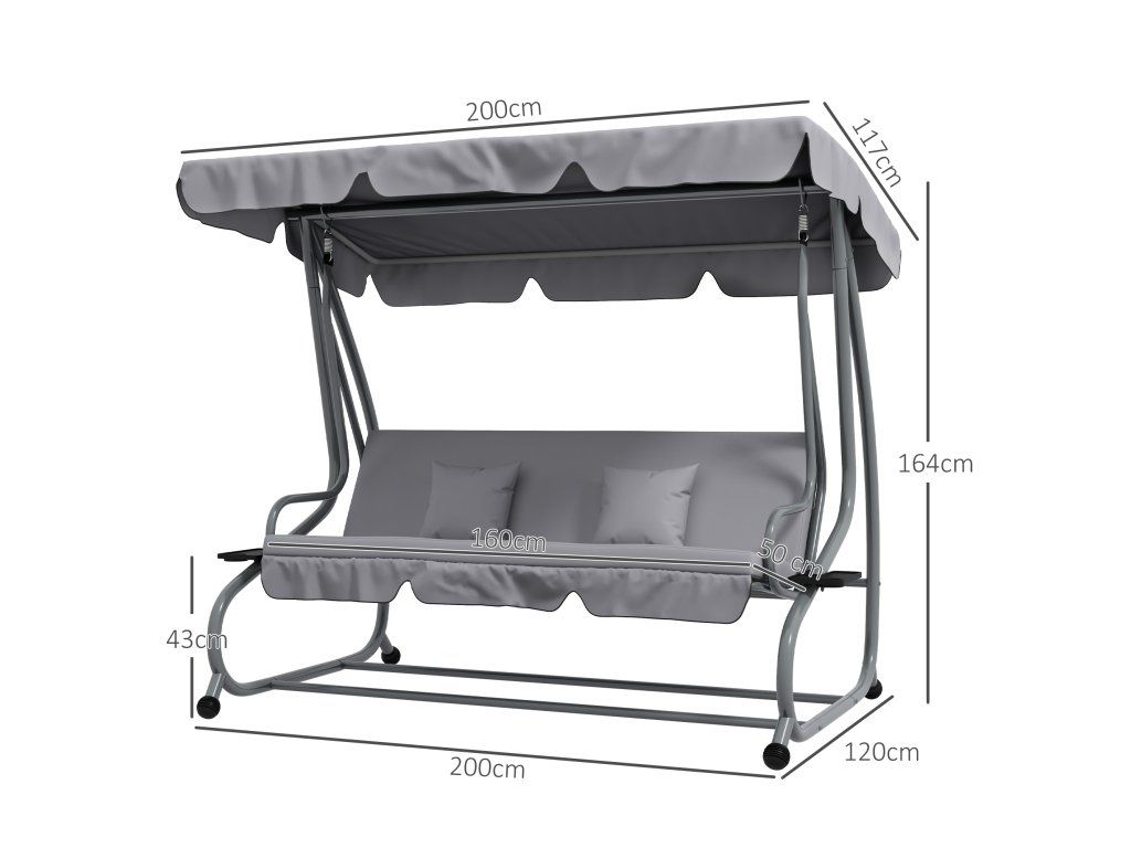 Houpačka s polohovací funkcí 200 x 120 x 164 cm | šedá