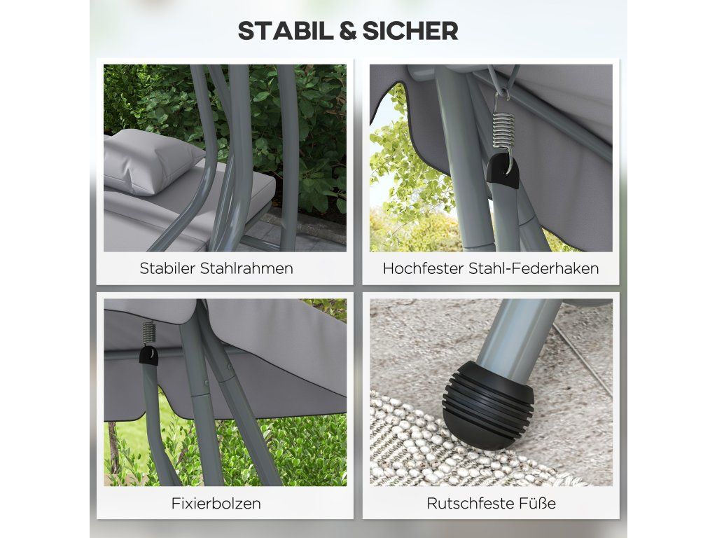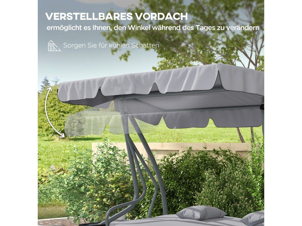 Nastavitelná sluneční clona pro optimální ochranu: Tato zahradní houpačka je vybavena nastavitelnou stříškou a nabízí ochranu před deštěm, která zajišťuje dokonalý stín v kteroukoli denní dobu.
