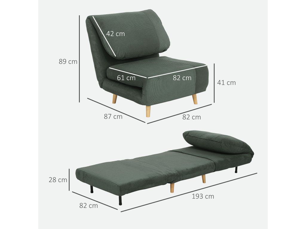 ✔ Celkové rozměry: 82 x 87 x 89 cm (pohovka), 193 x 82 x 28 cm (postel)