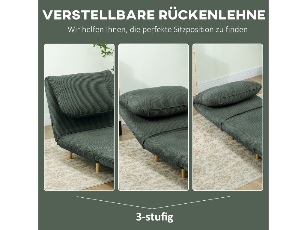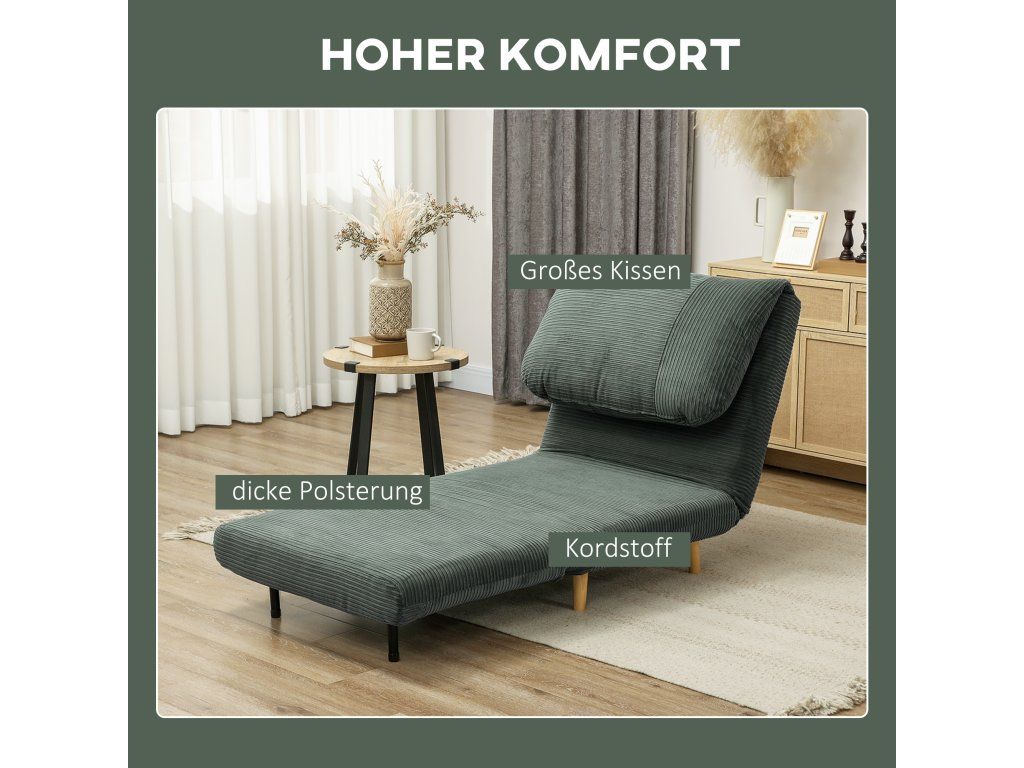 Vysoké pohodlí: Rozkládací pohovka je plně vyplněna silnou pěnou, potažena měkkým manšestrem a má velkou integrovanou opěrku hlavy pro pohodlné sezení a spaní. Extra široké sedátko je vhodné i pro vysoké a těžké osoby.