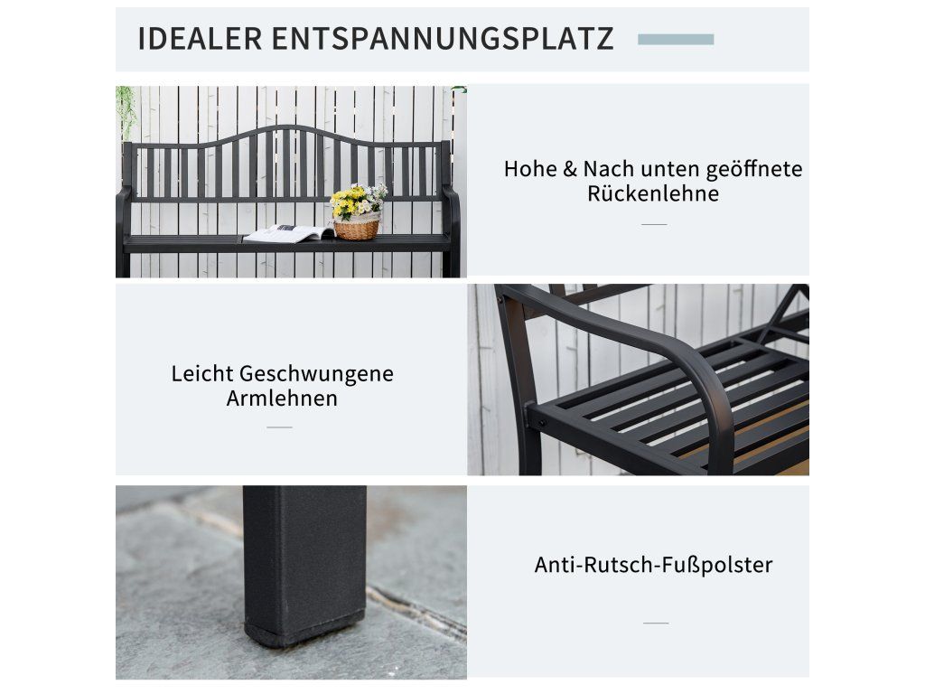 POHODLÍ: Vysoké kovové opěradlo a jemně zakřivené područky zahradní lavice nabízejí optimální pohodlí pro hodiny relaxace.