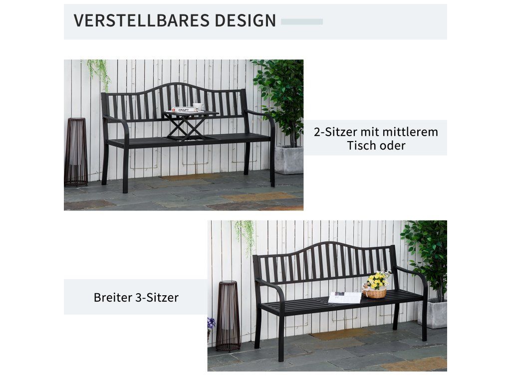 VŠESTRANNÝ DESIGN: Transformuje se z trojmístné zahradní lavice na dvoumístnou s odkládacím stolkem. Ideální pro relaxaci na slunci nebo pro trávení času venku během přestávky na kávu.