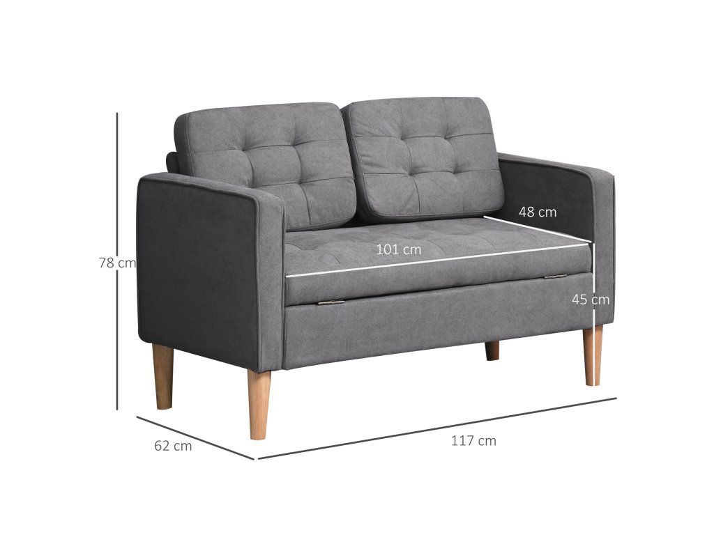 Dvoumístná pohovka s úložným prostorem 117 x 62 x 78 cm | šedá