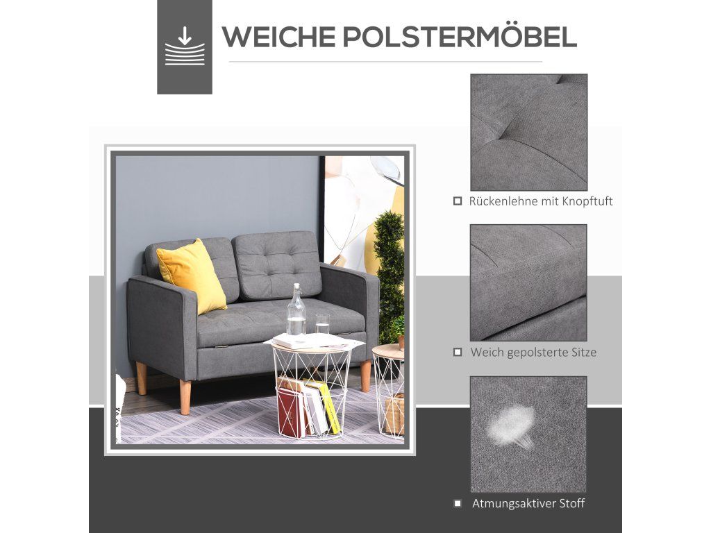 ✔ Elegantní opěradlo s knoflíky nabízí pevnou oporu a dodává dvoumístné pohovce nádech elegance.