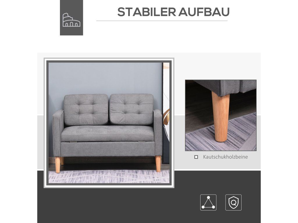 Robustní konstrukce: Robustní rám dvoumístné pohovky spolu s nohami z masivního kaučukovníku zajišťují odolnost a vysokou nosnost až 100 kg, takže se tato pohovka vyplatí.