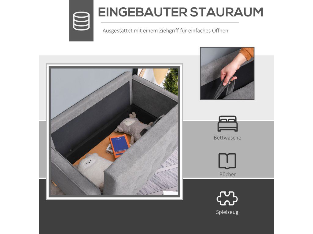 Skrytý úložný prostor: Vybavena prostorným úložným prostorem pod sedákem, snadno dostupným díky praktickému madlu – ideální pro ložní prádlo, knihy a další věci.