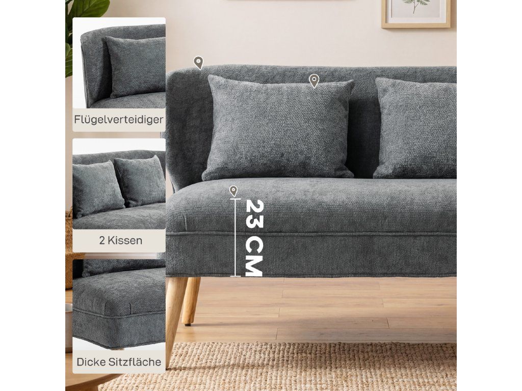 Design s opěradlem: Tato dvoumístná pohovka nabízí ergonomické pohodlí při sezení, útulný a uzavřený pocit a je ideální pro relaxační večery. Dva polštáře poskytují dodatečné pohodlí a oporu.