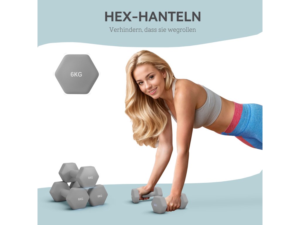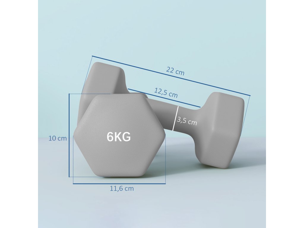 ✔ Obsahuje dvě činky, každá o hmotnosti 6 kg.