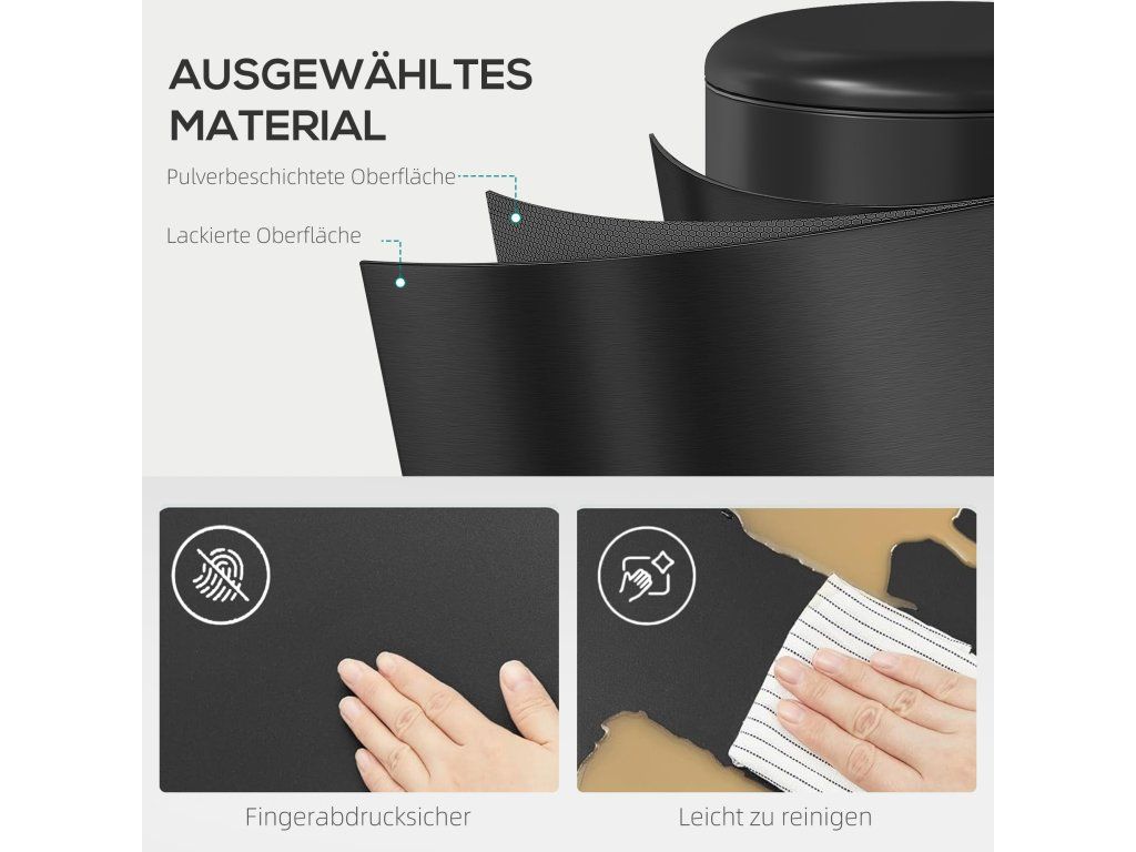 Elegance odolná proti otiskům prstů: Vyrobeno z kovu odpuzujícího nečistoty se stylovým lakovaným povrchem, toto kosmetické koše zůstává čisté a elegantní a harmonicky se hodí do jakéhokoli domácího prostředí.