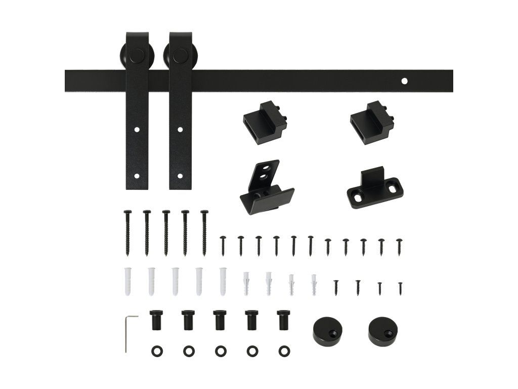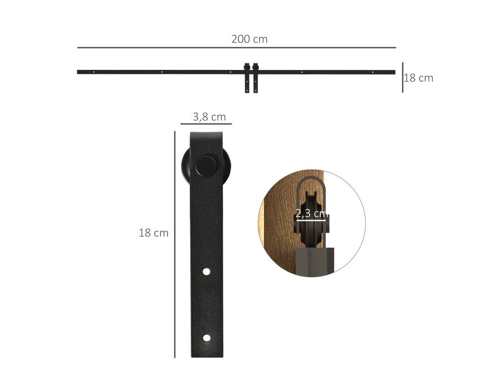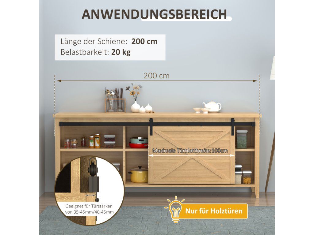 ROZSAH POUŽITÍ: Sada kování pro posuvné dveře o šířce 200 cm je vhodná pro maximální šířku dveří 100 cm; Vhodné pro tloušťky dveří 35-45 mm nebo 40-45 mm; maximální nosnost: 20 kg. Vhodné pro dřevěné dveře.