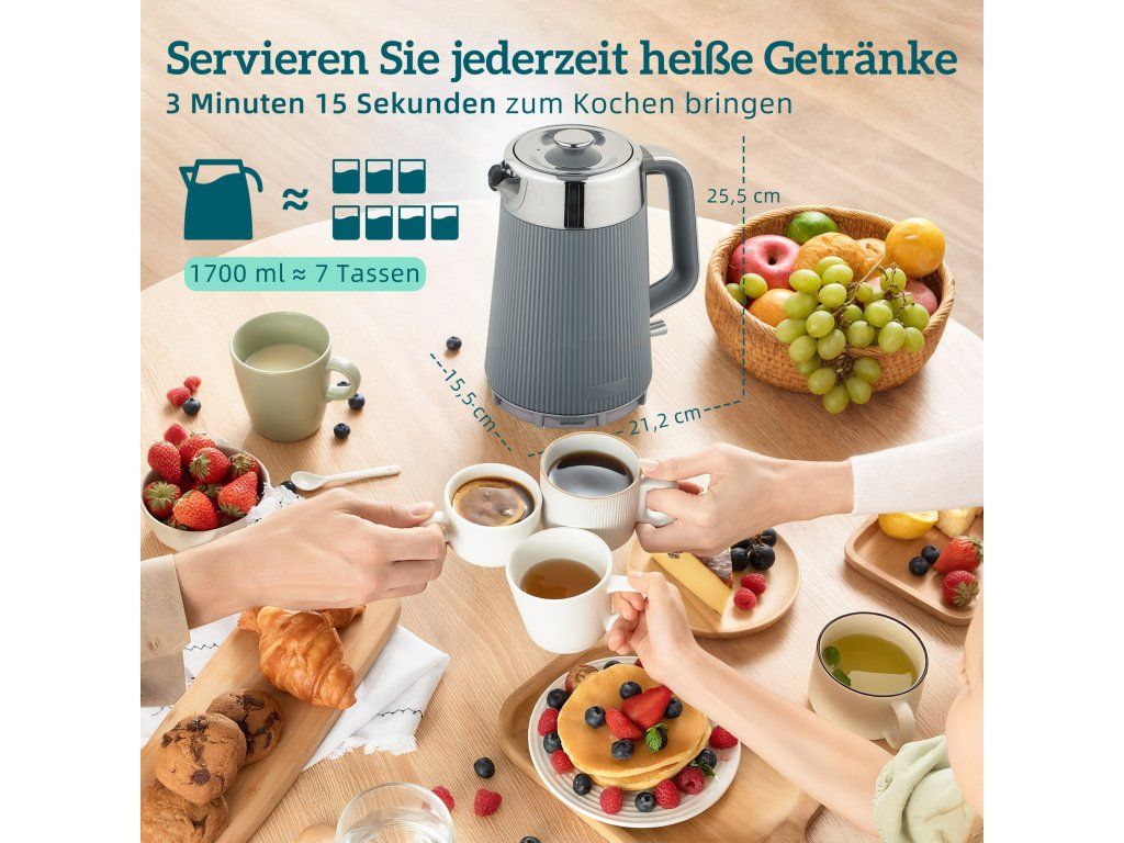 ✔ Konvice o objemu 1,7 l připraví sedm horkých nápojů. Termostat pro automatické vypnutí, ochrana proti vyvaření naprázdno a ochrana proti přehřátí.