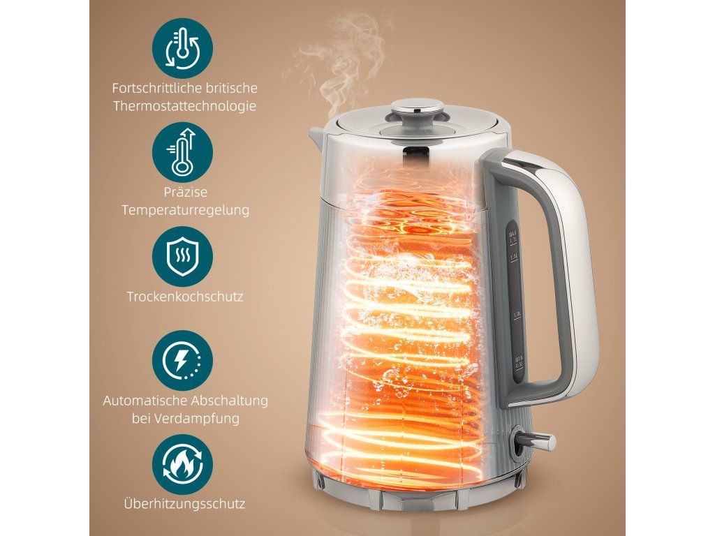 ✔ Konvice s výkonem 2200 W uvaří až 1,7 l během několika minut. Dostatečné množství pro sedm šálků.