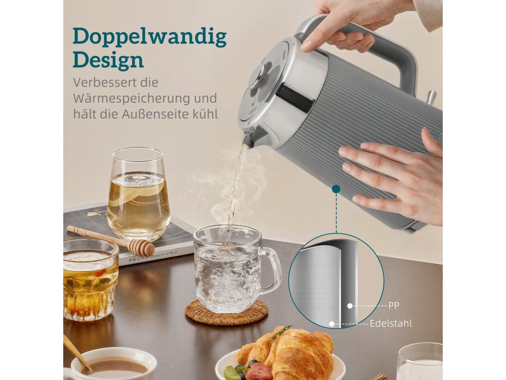 Bezpečný termostat: Automatické vypnutí při bodu varu zabraňuje vyvaření vody a přehřátí. Dvouvrstvá konstrukce snídaňové sady udržuje vnější povrch chladný na dotek a zajišťuje bezpečnou manipulaci.