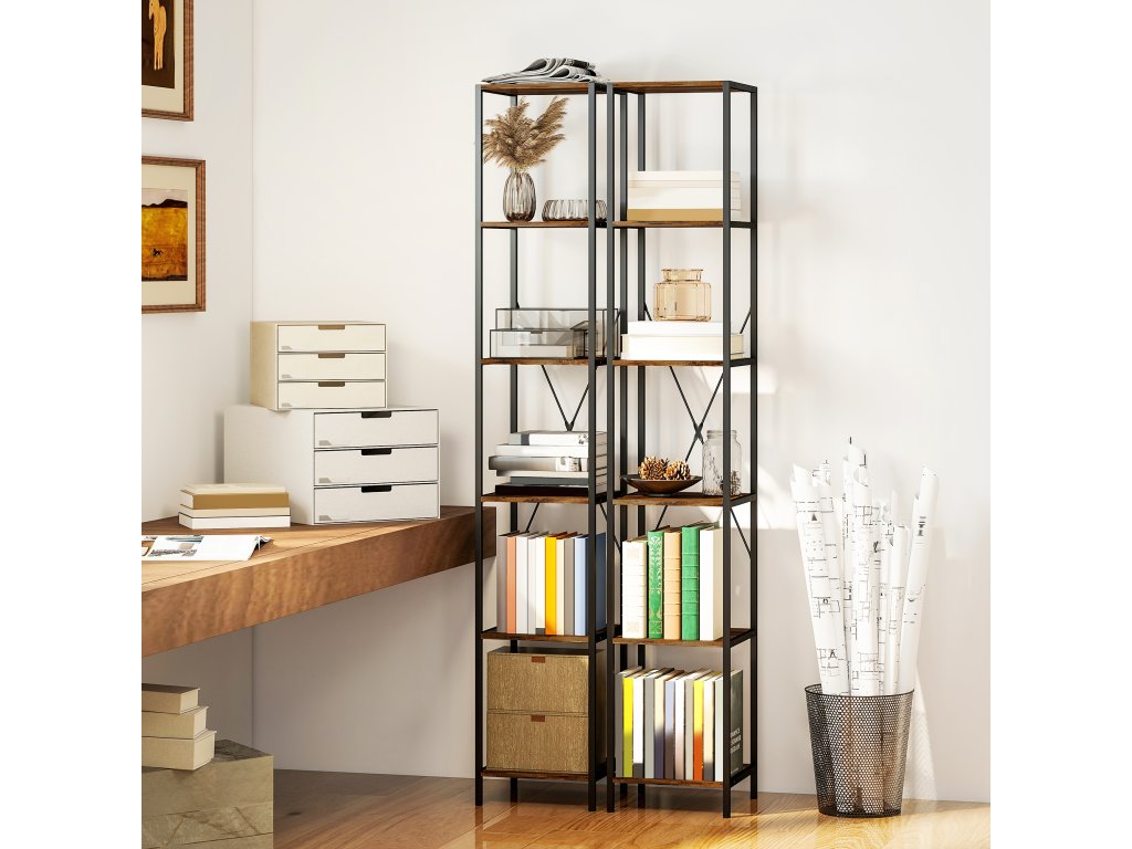 Sada knihoven v industriálním stylu: Tato sada dvou knihoven v rustikální hnědé barvě se vyznačuje elegantním designem inspirovaným industriálním stylem a přináší nadčasovou eleganci do každé místnosti. Ideální do obývacích pokojů, ložnic nebo kanceláří.