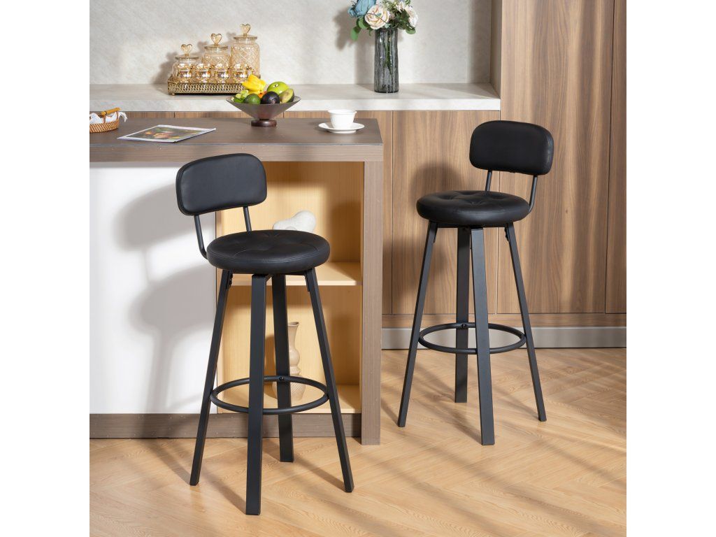 Otočné o 360° s opěrkou nohou: Tato sada dvou barových židlí je vybavena plynulou funkcí otáčení o 360 stupňů a integrovanou opěrkou nohou a nabízí pohodlné sezení a umožňuje snadnou konverzaci z jakékoli strany kuchyňského ostrůvku nebo barového koutu.