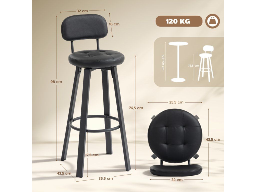 ✔ Otočné barové židle o 360° s integrovanou opěrkou nohou.