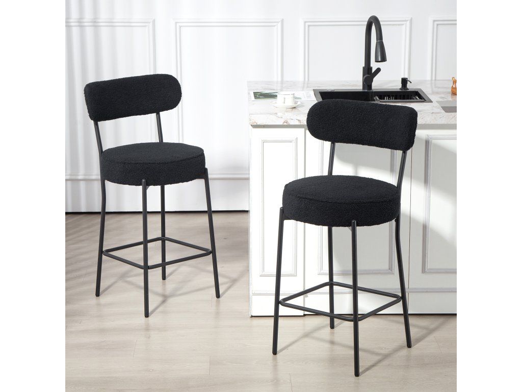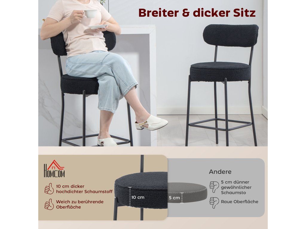 Měkká látka, celodenní pohodlí: Dvě barové stoličky potažené měkkým fleecovým materiálem a polstrované hustou pěnou. Zakřivené opěradlo a polstrovaný sedák jsou ideální pro dlouhé rozhovory nebo uvolněné stolování.