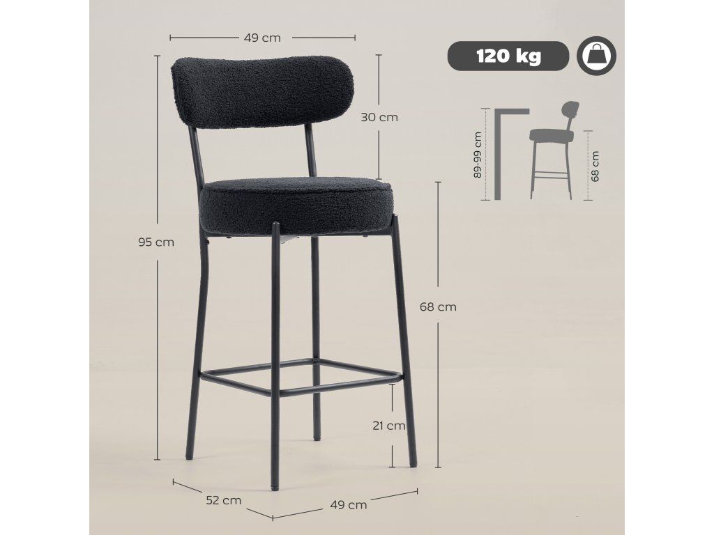 ✔ Vhodná výška barového stolu: 89-99 cm