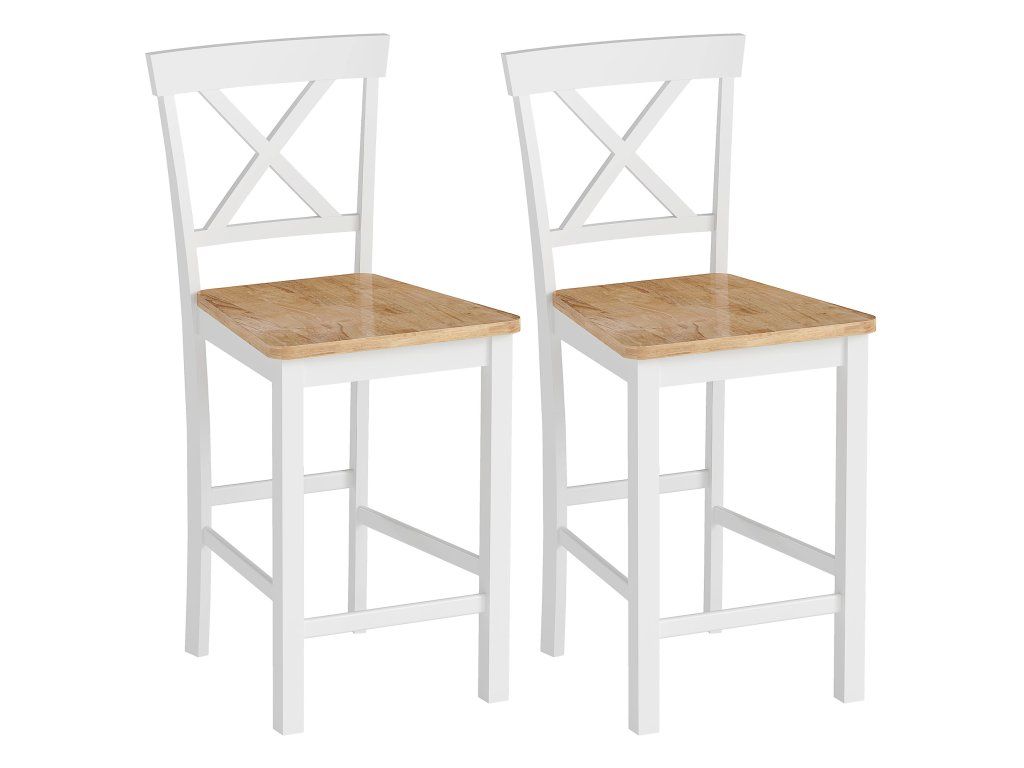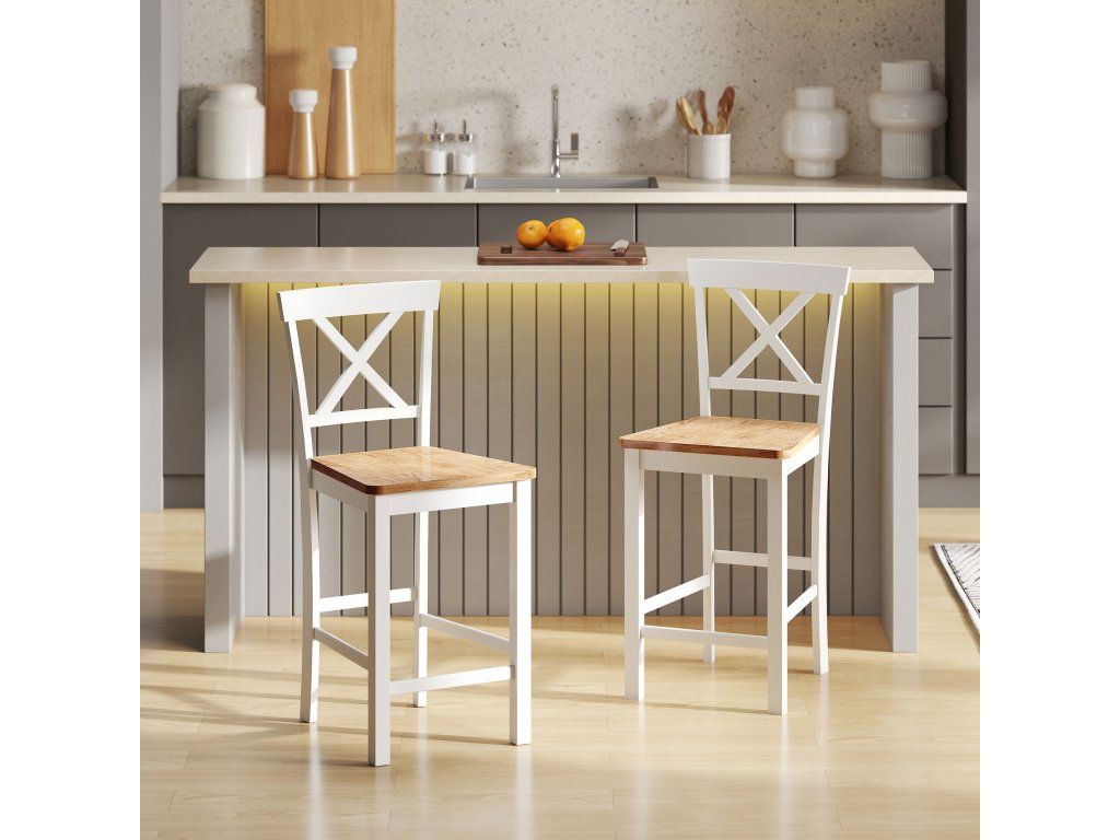 Vylepšete si kuchyň dvoudílnou sadou barových židlí, která v sobě spojuje eleganci a funkčnost. Vyrobeno z odolného kaučukovníku, zesílené příčné nosníky zajišťují každodenní stabilitu. Klasický dubový a bílý design s opěradlem ve tvaru X doplňuje interiéry ve venkovském stylu. Ergonomicky tvarované opěradlo a podnožka kuchyňské židle zvyšují pohodlí při dlouhých jídlech nebo setkáních a zajišťují pohodlné sezení pro každou příležitost.