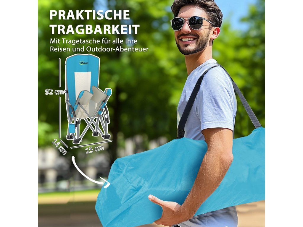 Pohodlný design: Díky prodyšnému síťovanému opěradlu a pěnovým polstrovaným područkám, které chrání před horkým kovem, nabízí tato skládací židle maximální pohodlí pro všechny vaše venkovní aktivity.