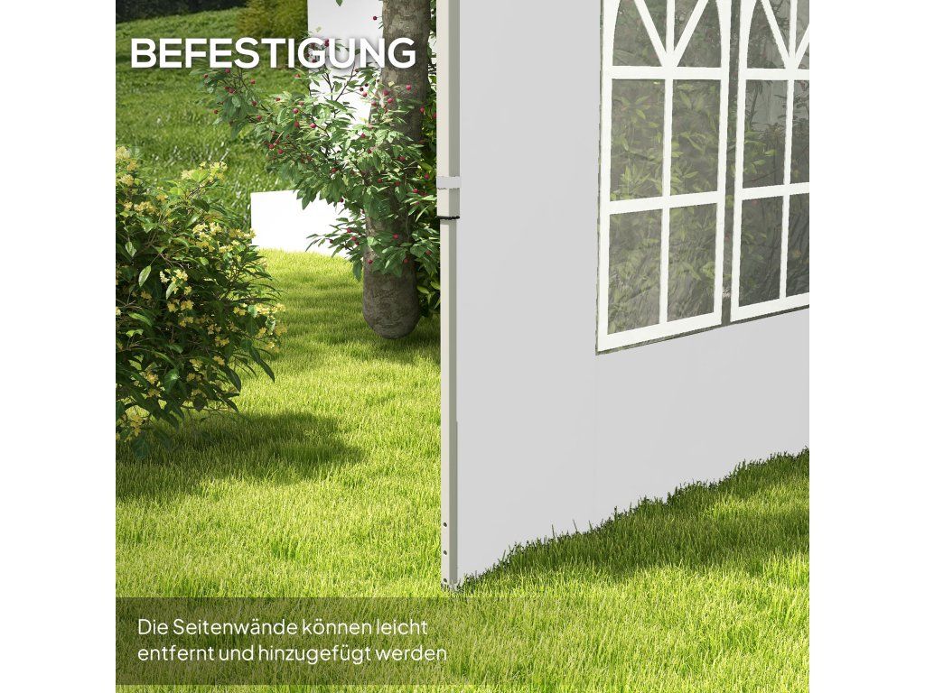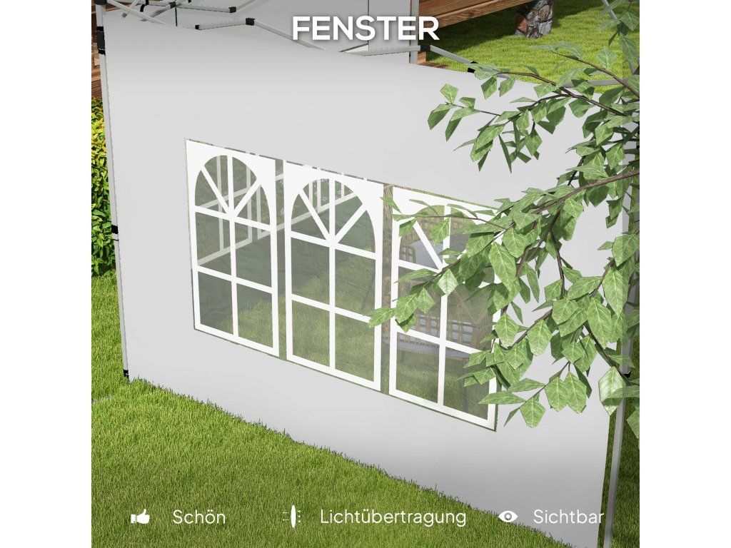 ✔ Okna bočních panelů altánu propouštějí dostatek světla a nabízejí nerušený výhled.