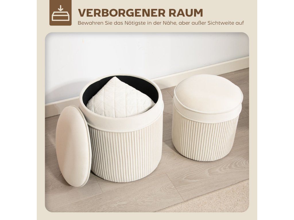 ✔ Vysokohustotní pěnové polstrování úložného taburetu zajišťuje pohodlné sezení.