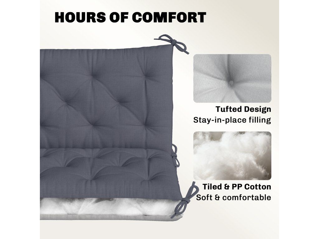 Tento polštář na zahradní lavičku, ideální pro jakoukoli kovovou nebo dřevěnou lavičku, výrazně zvyšuje pohodlí při sezení. Vyroben z odolné polyesterové tkaniny s měkkou pěnovou výplní, lze tento polštář na sezení zahradní lavice bezpečně připevnit k zahradnímu nábytku.