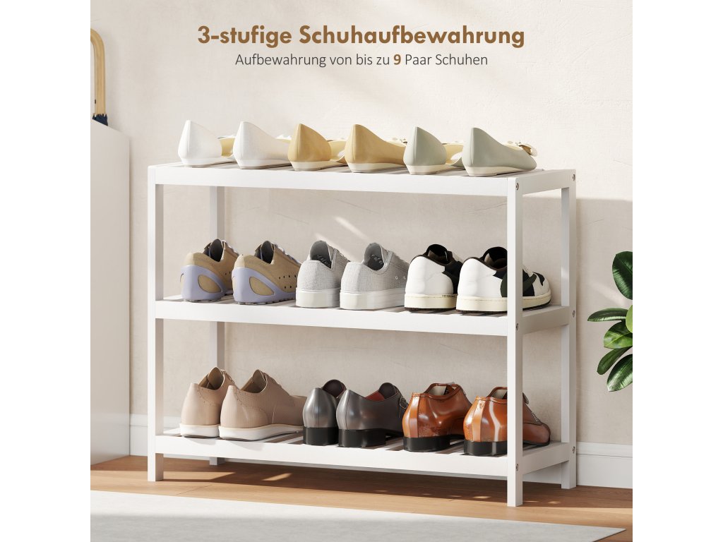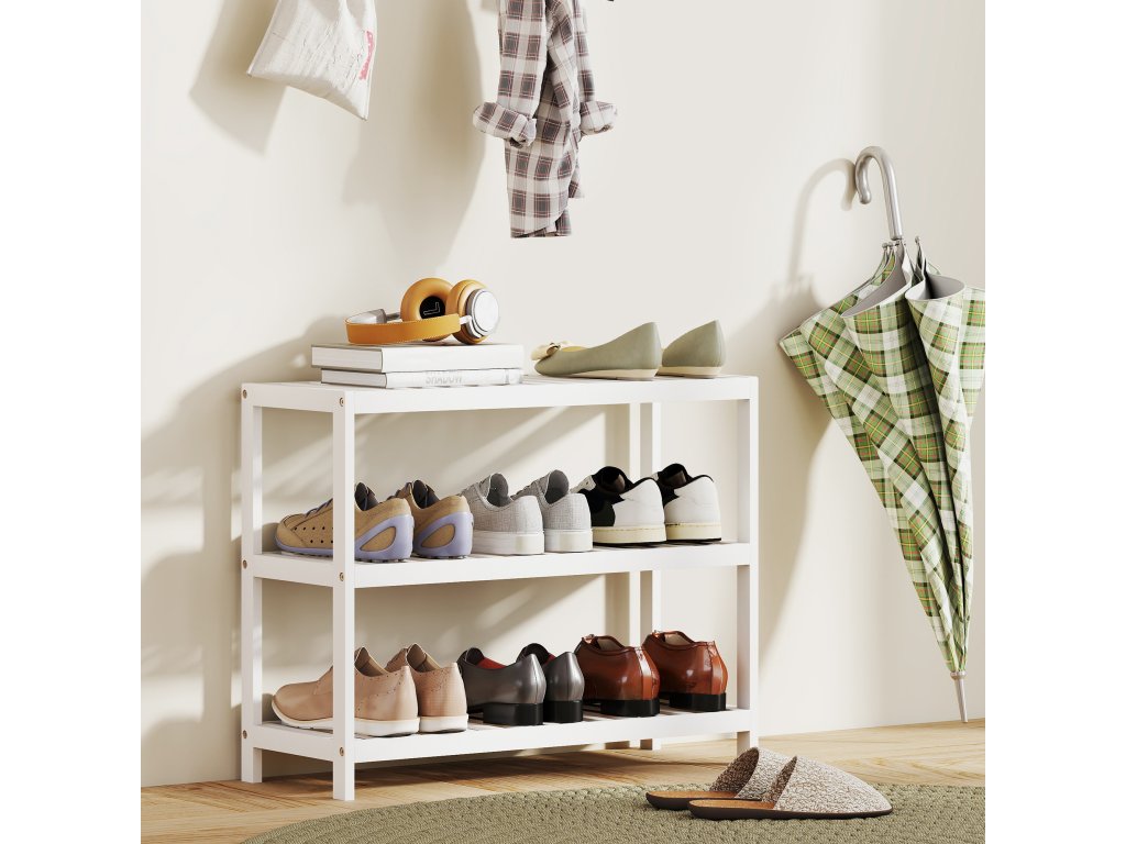 Proměňte svůj přeplněný vchod v klidnou oázu s botníkem. Vyrobený z přírodního bambusu vytváří zdravou a bezzápachovou atmosféru. Moderní bílý design se bez problémů hodí do jakéhokoli interiéru. Tento botník poskytuje úložný prostor nejen pro boty, ale také pro knihy a předměty denní potřeby, čímž vylepší váš obytný prostor. Užijte si dokonalou kombinaci stylu a funkčnosti, která bez námahy pozvedne váš domov.