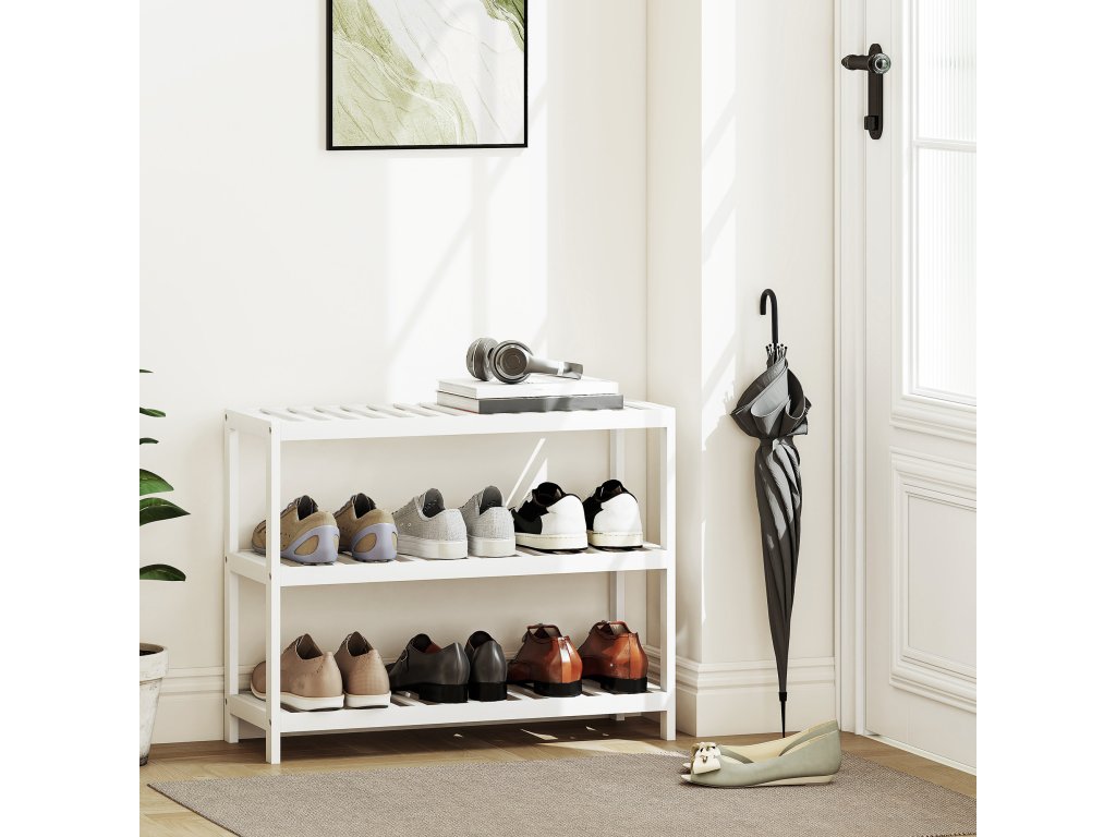 Bambusový botník 3 patra | bílý