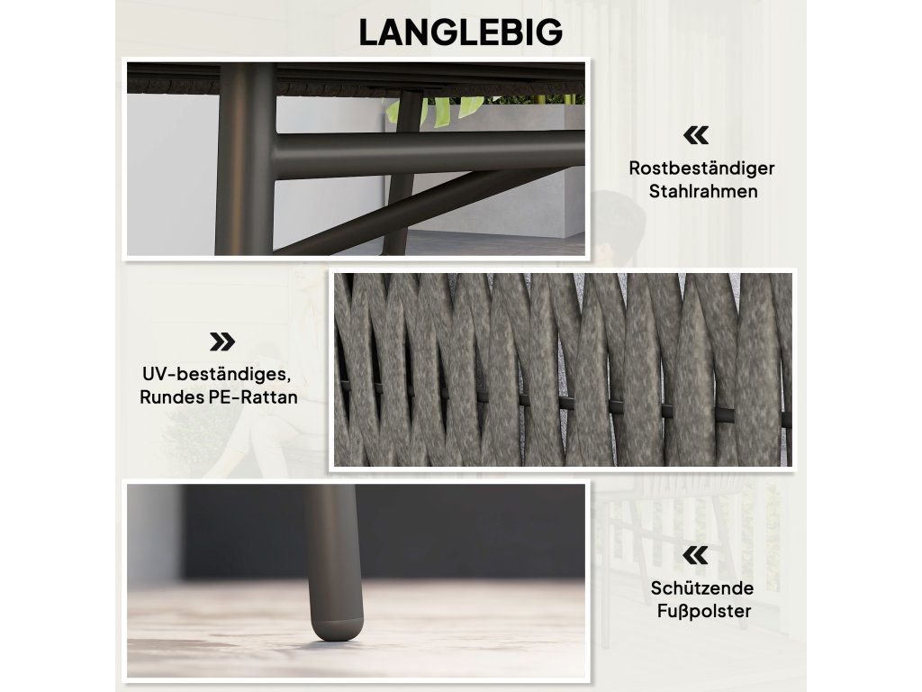 ✔ Materiál: ocel, polyester, PE ratan, pěna